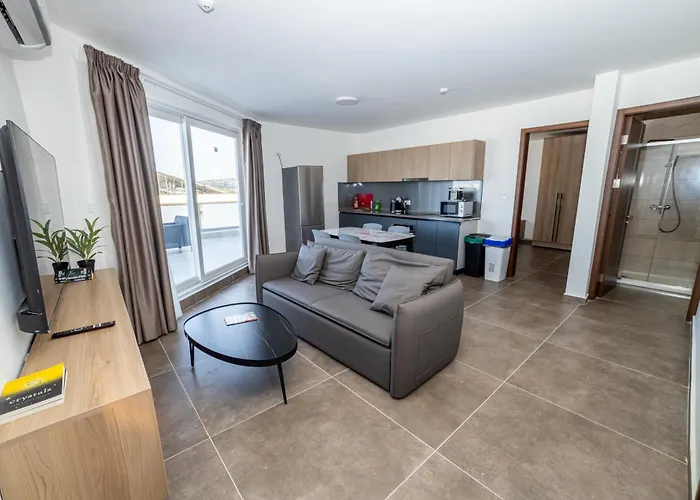 Modern 2-Bedroom Penthouse With Terrace - By Hostmt apartment offers an equipped kitchenette with all necessary appliances. Burmarrad - Rihana bus stop can be found within reach of the apartment. Guests are welcome in a private garden.